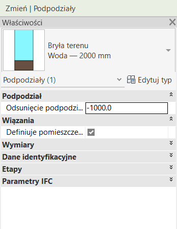 Być może najważniejszą ze zmian jest to, że podpodział może obecnie mieć grubość o wartości ujemnej lub zerowej (czyli zagłębia się w bryłę terenu lub jest jemu równy) – dotychczas dopuszczane były wyłącznie wartości dodatnie. Przy okazji powoduje to utworzenie wykopu w bryle terenu, a pomniejszoną objętość można odczytać z panelu jej właściwości.