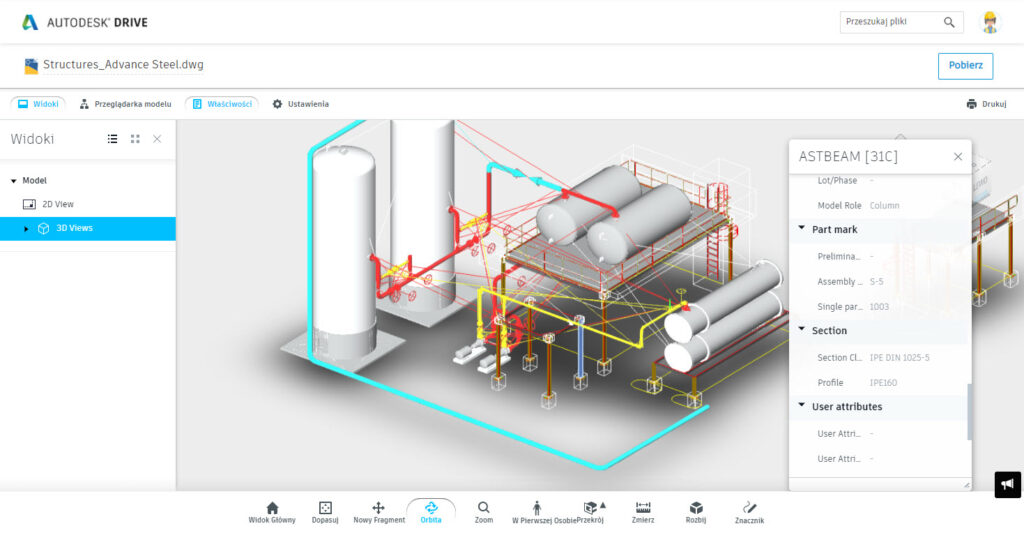 Dzięki obsłudze wielu formatów plików, kliknięcie na pliku inżynierskim otwiera osobne okno przeglądarki internetowej, w którym można dokonać przeglądu. Przeglądarka pozwalaja na podgląd plików projektowych 2D ale także modeli. Jeśłi plik oferuje więcej widoków niż jeden, będą one dostępne na palecie Widoki po lewej stronie okna. Można nawigować w widoku podglądu dostępnymi poleceniami, odczytywać właściwości obiektów, ukrywać wybrane składowe, w modelu uruchomić spacer, przekroić go lub rozstrzelić komponenty w celu dokładniejszej analizy zawartości.