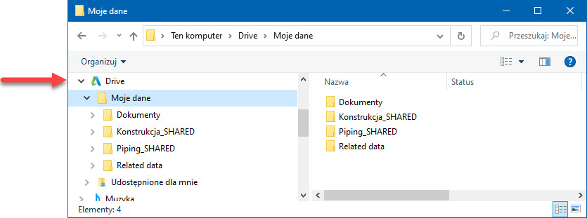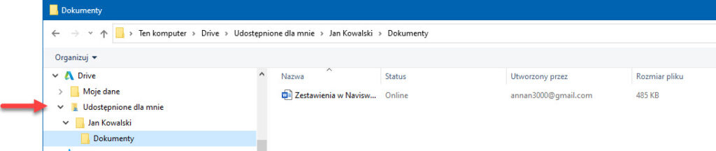 Udostępnione nam inne dyski znajdziemy w podfolderze Udostępnione dla mnie.