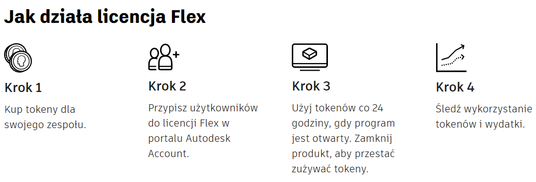 Licencje Flex z pakietem tokenów to całkiem nowy sposób opłaty za oprogramowanie Autodesk. Ta wygodna opcja umożliwia płatności i użycie programu osobom sporadycznie korzystającym z licencji Autodesk, np. przez dzień lub dwa. Wykupione tokeny pozwalają na używanie dowolnych programów z dostępnej gamy produktów. To nic innego jak wynajem produktu na godziny.