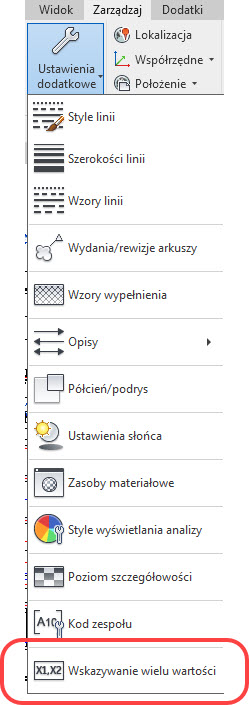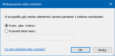 Ustawienia projektu w tym zakresie znajdziemy w menu Zarządzaj, po rozwinięciu Ustawienia dodatkowe w pozycji Wskazywanie wielu wartości. W okienku dialogowym o tej samej nazwie można przyjąć dla projektu wartość proponowaną lub wpisać własną.