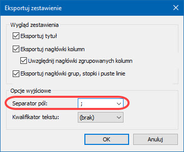 Kliknięcie Zapisz otwiera okno Eksportuj zestawienie, znane z poprzednich wersji. Tu też stosuję wybrany w systemie znak separacji.