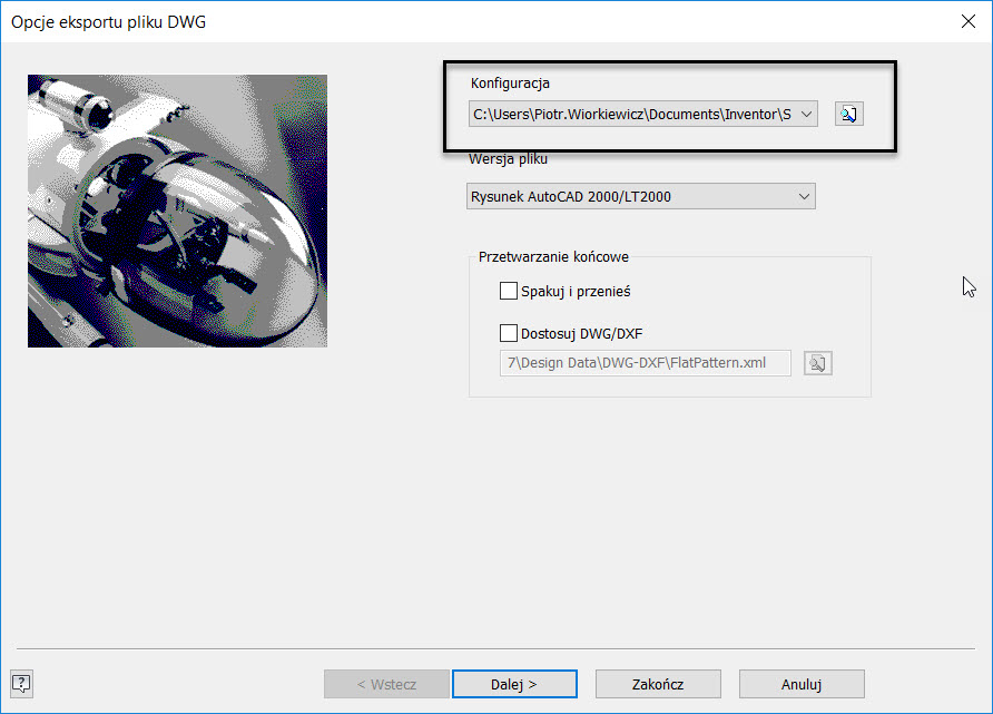Eksport plików dokumentacji płaskiej .idw do .dwg w Autodesk Inventor