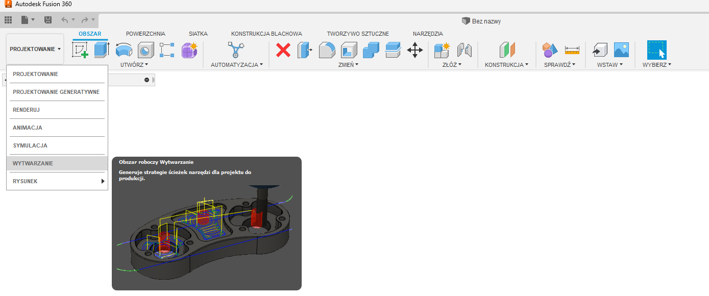 Dobra wiadomość dla polskich użytkowników Fusion 360. W jednej z ostatnich aktualizacji producent, firma Autodesk wydała polską wersję językową tego narzędzia. Spolszczone zostały wszystkie środowiska m. in. Projektowanie, Symulacja, Wytwarzanie (CAM) czy Rysunek.
