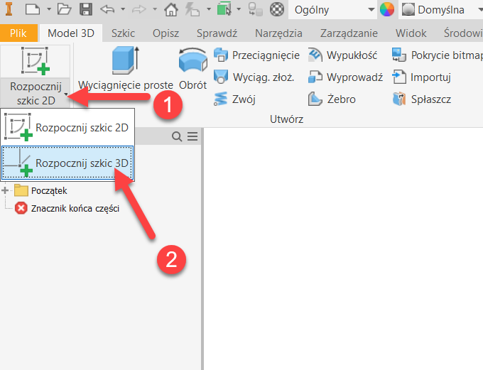 - Najpierw stworzę krzywą na której będę później rozmieszczał części. W nowym pliku części tworzę szkic 3D.