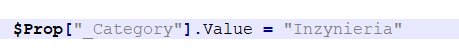W zaznaczonym wierszu wybierana jest kategoria domyślna odpowiadająca wartości zmiennej CAT1 z plików lokalizacyjnych. Jest to kategoria Inżynieria i taka powinna być wybierana jako domyślna. Jeżeli jednak coś nie działa prawidłowo, możemy nadpisać ten wybór odpowiednią nazwą kategorii: