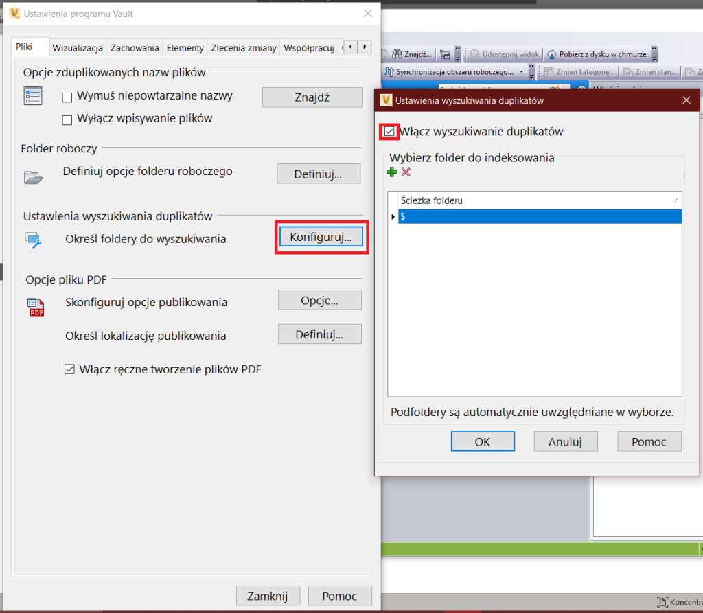 Od tej pory Vault zacznie budować bazę danych plików we wskazanym folderze pod kątem obecności plików zawierających taką samą geometrię.
