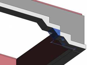 Jeśli nie możemy sobie pozwolić na takie uproszczenie w modelu fundamentów, do zapewnienia ciągłości uskoków można wykorzystać rodzinę wczytywalną, utworzoną na szablonie stopy fundamentowej, w kształcie klinu, rozmieszczoną odpowiednio na końcach segmentów ław. Ważne, aby rodzina ta miała przyporządkowany ten sam materiał, co ława.