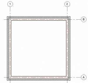 Modelujemy je na poziomie, dedykowanym dla górnej krawędzi ławy fundamentowej. Oprę się na bardzo prostym przykładzie prostokątnego rzutu budynku, poniżej po lewej rzut parteru, po prawej rzut fundamentów.