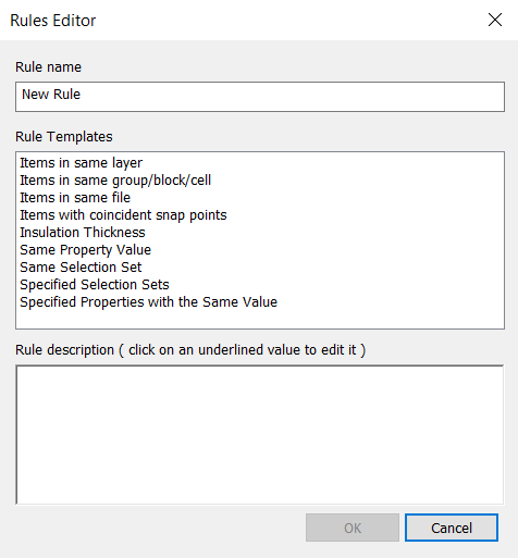 3. Pojawi Wam się okno dialogowe Rules Editor z domyślnymi szablonami, które możesz wykorzystać do stworzenia własnych.