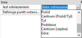Kolejna właściwość płaszczyzn to Jest odniesieniem. Dostępne opcje na liście rozwijalnej pozwalają ustalić, czy dla danej płaszczyzny odniesienia będzie można umieszczać linie wymiarowe, wyrównywać inne obiekty oraz stosować przyciąganie, gdy rodzina znajdzie się już w projekcie. Dodatkowo ustalamy priorytet odniesienia, gdyż Revit rozróżnia „moc” przyciągania jako silne odniesienie lub słabe odniesienie .