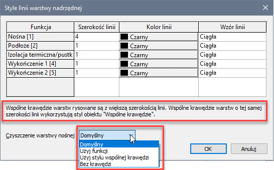 Dodam jeszcze kilka słów, odnośnie informacji i ustawień, jakie są dostępne są w okienku Style linii warstwy nadrzędnej, dotyczące zasad nakładających się krawędzi.