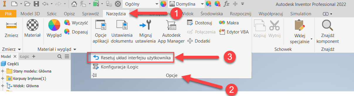 Resetowanie interfejsu użytkownika w Autodesk Inventor