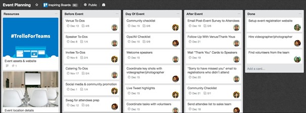 Również użyć aplikacji do organizowania spotkań, czyli stworzyć listę (w formie kart), które należy umówić podczas kolejnego spotkania danej karty możesz przypisać osobę która będzie o tym mówić oraz termin tego spotkania, który pojawi Ci się na kalendarzu Trello. Tak przygotowane spotkanie ułatwia również prowadzenie takiej rozmowy przez koordynatora (lub jak kto woli, osoby która spotkanie prowadzi), bo w trakcie trwania spotkania możesz przerzucać poszczególne karty między kartami, dokładnie widząc co zostało wykonane.