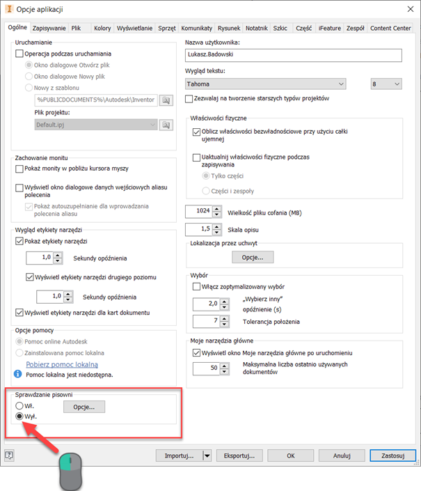 Sprawdzanie pisowni w Autodesk Inventor