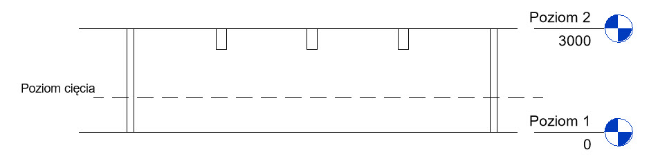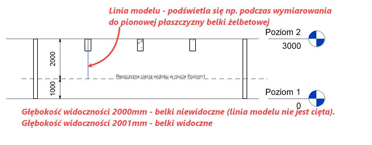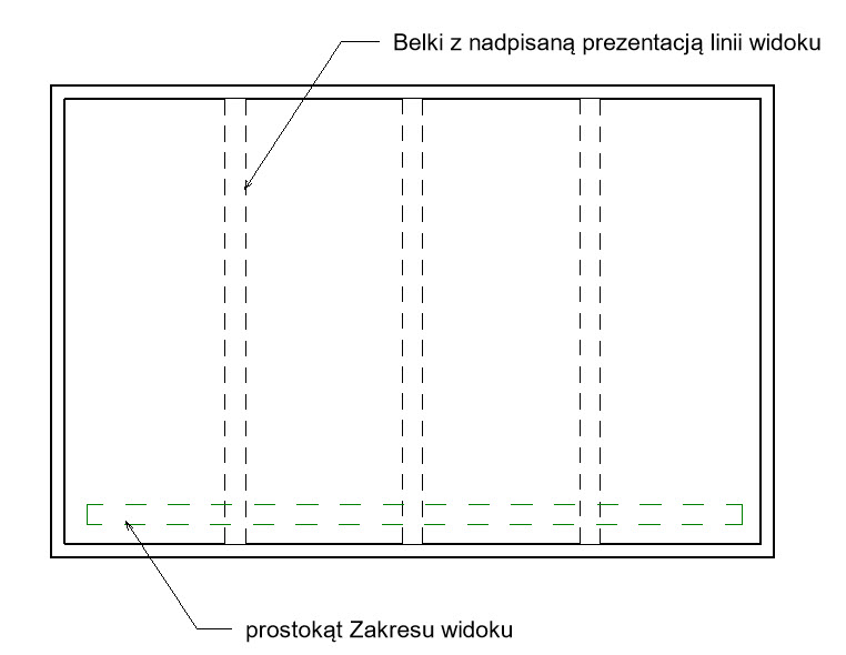 Widoczność belek konstrukcyjnych umieszczonych ponad płaszczyzną cięcia