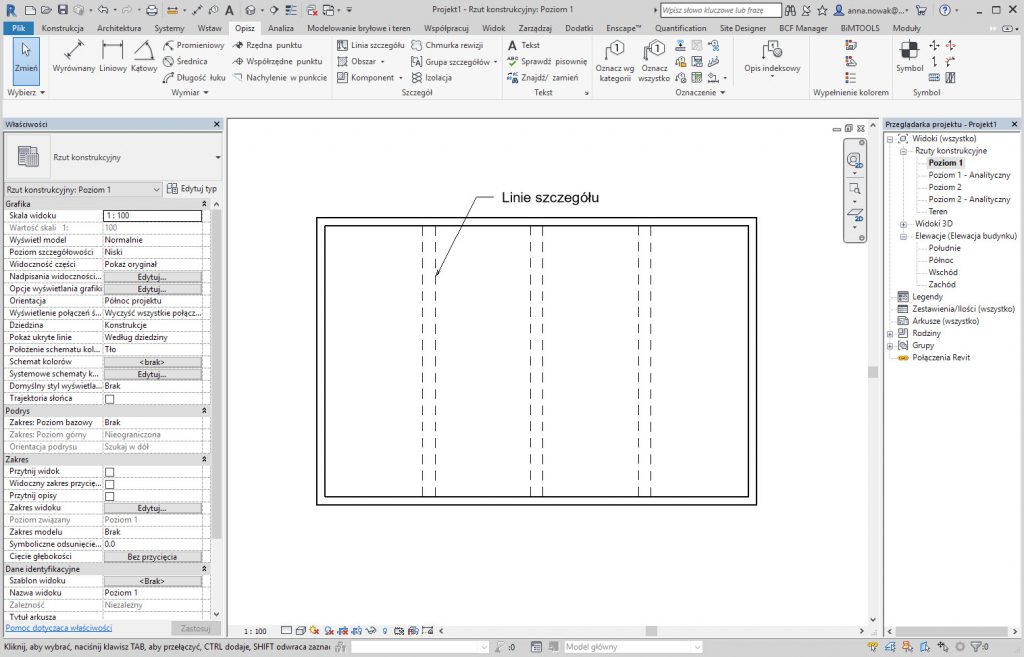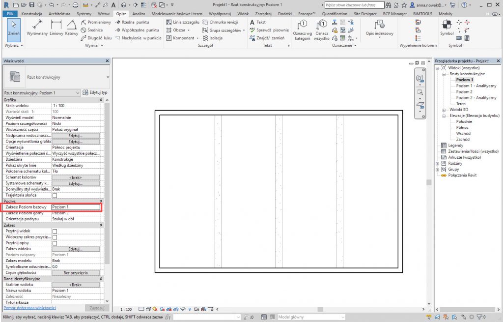 Sprawdzamy jedną z właściwości rodziny widoku (tu rodzina widoków Rzut konstrukcyjny).
