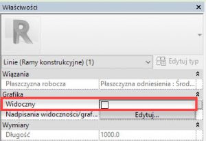 Dla nowej linii modelu we Właściwościach wyłączamy opcję Widoczny.