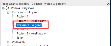 Powielamy bieżący widok rzutu poziomego – zmieniamy mu nazwę, np. na Poziom 1 – w górę.