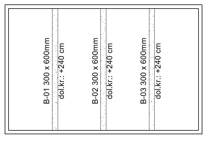 Wszystkie elementy, zawarte w zakresie widoku stają się widoczne, także belki. Daje to możliwość po pierwsze sprawdzenia ich położenia, po drugie obrysowania ich położenia narzędziem Opisz > Linia szczegółu w celu udokumentowania.